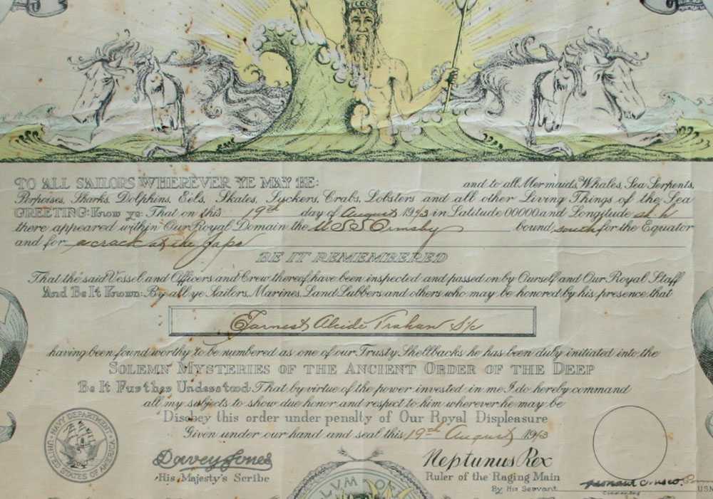 Dad's Shellback Certificate |